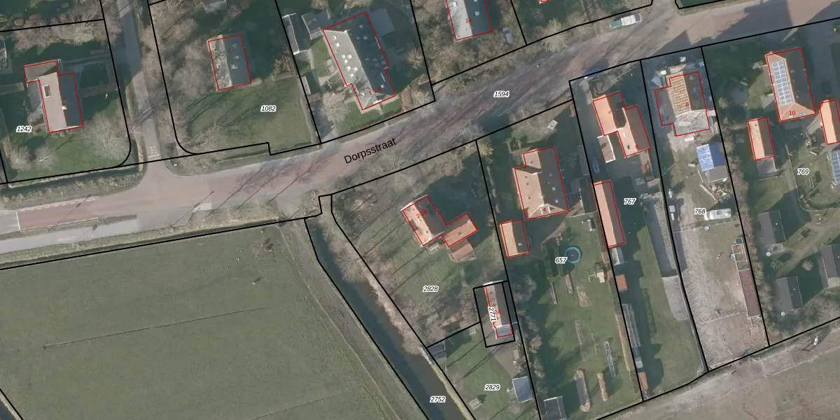 Het perceel waarop Dorpsstraat 2 staat heeft een oppervlakte van 1230 m². Dit is een zeer groot perceel. De perceeloppervlakte wordt geregistreerd door het Kadaster. Gedetailleerde informatie over de maten van dit perceel kunt u vinden in het rapport Kadastrale kaart met maatvoering van Dorpsstraat 2.