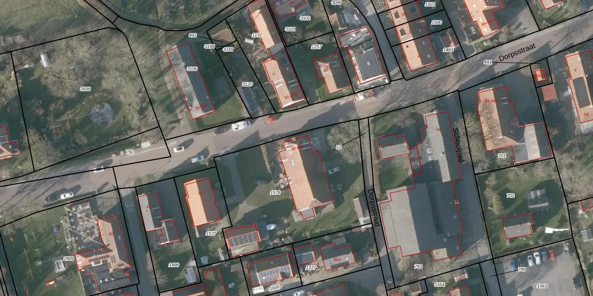 Het perceel waarop Dorpsstraat 48 staat heeft een oppervlakte van 1716 m². Dit is een zeer groot perceel. De perceeloppervlakte wordt geregistreerd door het Kadaster. Gedetailleerde informatie over de maten van dit perceel kunt u vinden in het rapport Kadastrale kaart met maatvoering van Dorpsstraat 48.