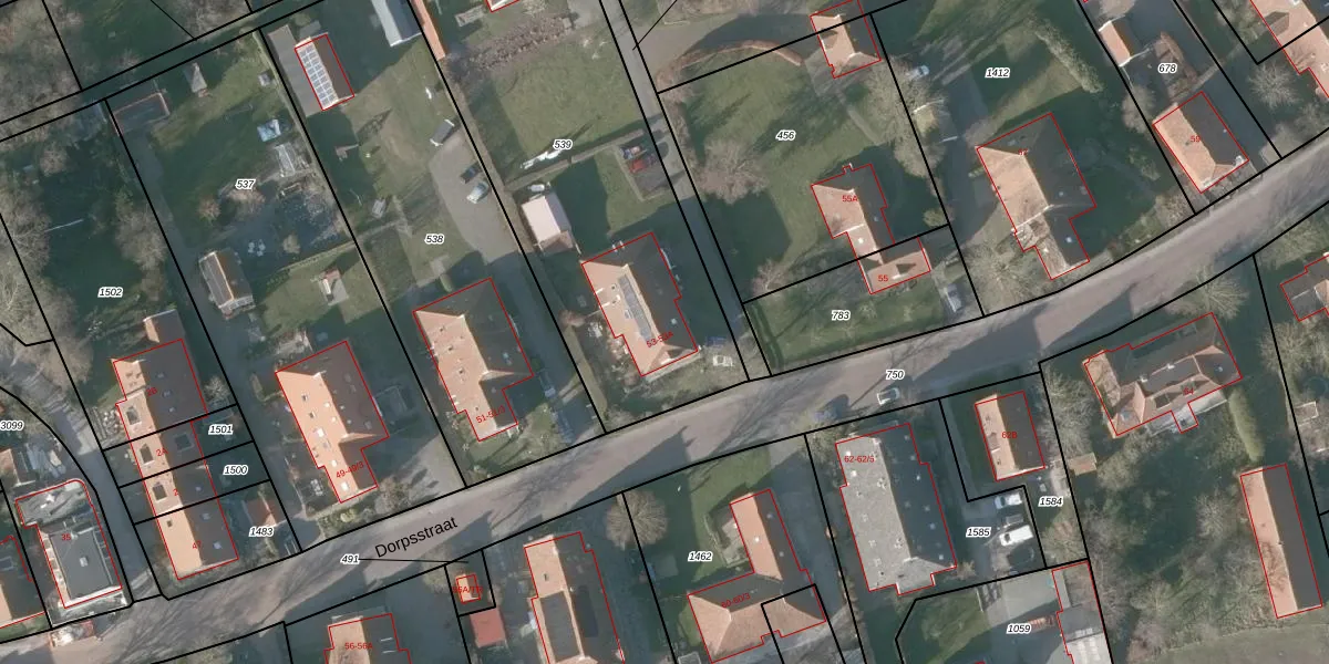 Het perceel waarop Dorpsstraat 53 staat heeft een oppervlakte van 1878 m². Dit is een zeer groot perceel. De perceeloppervlakte wordt geregistreerd door het Kadaster. Gedetailleerde informatie over de maten van dit perceel kunt u vinden in het rapport Kadastrale kaart met maatvoering van Dorpsstraat 53.