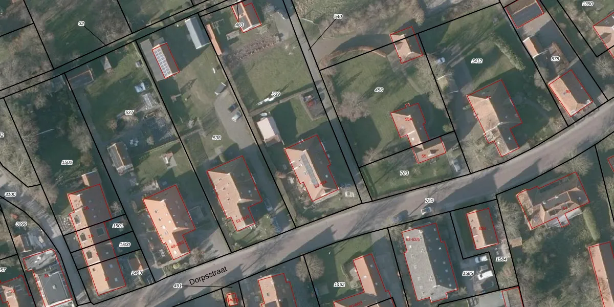 Het perceel waarop Dorpsstraat 53-A staat heeft een oppervlakte van 1878 m². Dit is een zeer groot perceel. De perceeloppervlakte wordt geregistreerd door het Kadaster. Gedetailleerde informatie over de maten van dit perceel kunt u vinden in het rapport Kadastrale kaart met maatvoering van Dorpsstraat 53-A.