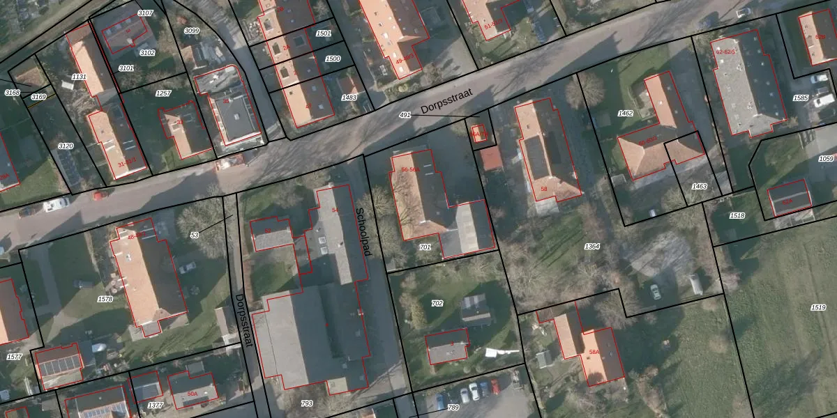 Het perceel waarop Dorpsstraat 56-A staat heeft een oppervlakte van 798 m². Dit is een groot perceel. De perceeloppervlakte wordt geregistreerd door het Kadaster. Gedetailleerde informatie over de maten van dit perceel kunt u vinden in het rapport Kadastrale kaart met maatvoering van Dorpsstraat 56-A.