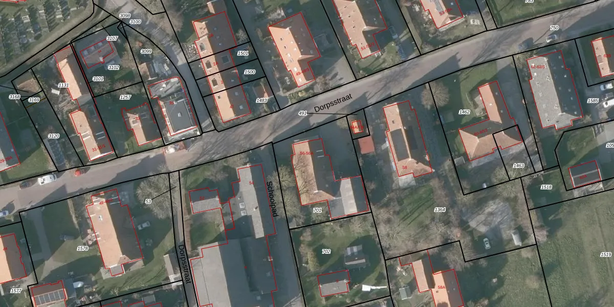 Het perceel waarop Dorpsstraat 56 staat heeft een oppervlakte van 798 m². Dit is een groot perceel. De perceeloppervlakte wordt geregistreerd door het Kadaster. Gedetailleerde informatie over de maten van dit perceel kunt u vinden in het rapport Kadastrale kaart met maatvoering van Dorpsstraat 56.