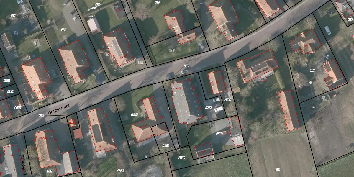 Het perceel waarop Dorpsstraat 62 staat heeft een oppervlakte van 779 m². Dit is een groot perceel. De perceeloppervlakte wordt geregistreerd door het Kadaster. Gedetailleerde informatie over de maten van dit perceel kunt u vinden in het rapport Kadastrale kaart met maatvoering van Dorpsstraat 62.