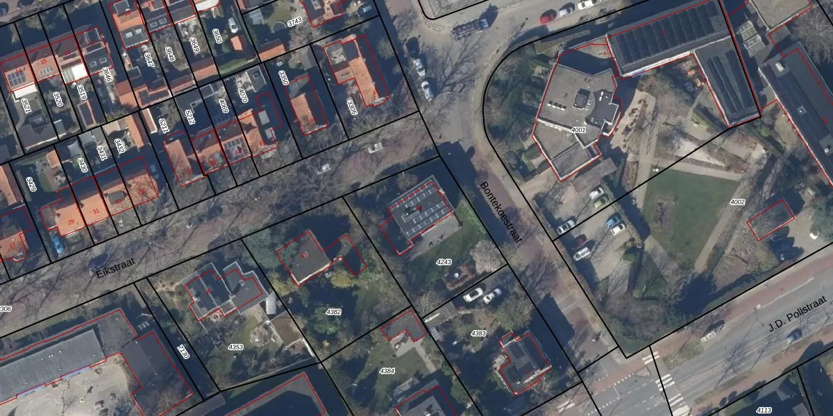 Het perceel waarop Eikstraat 42 staat heeft een oppervlakte van 822 m². Dit is een groot perceel. De perceeloppervlakte wordt geregistreerd door het Kadaster. Gedetailleerde informatie over de maten van dit perceel kunt u vinden in het rapport Kadastrale kaart met maatvoering van Eikstraat 42.