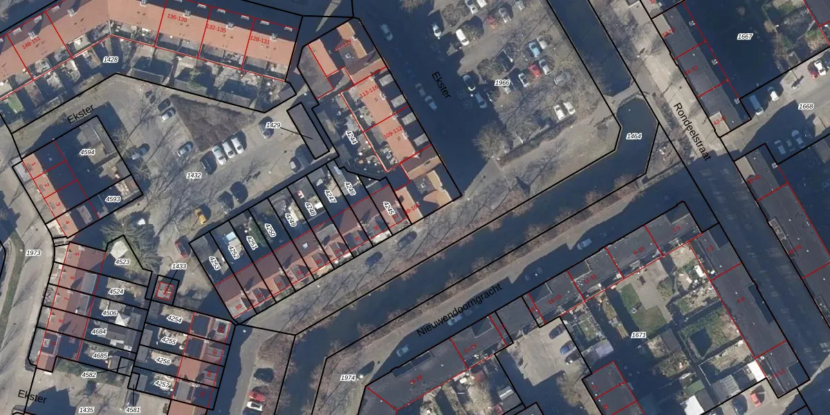 Ekster 100 is gelegen op kadastraal perceel HOO00L4244. Deze kadastrale aanduiding is uniek en wordt gebruikt door het Kadaster om eigendomsrechten en andere zakelijke rechten vast te leggen. Het perceel maakt onderdeel uit van de kadastrale gemeente Hoorn.