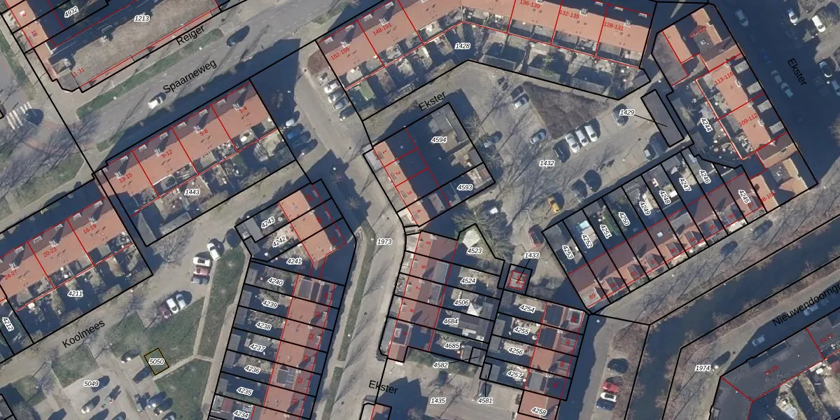 Ekster 4 is gelegen op kadastraal perceel HOO00L4593. Deze kadastrale aanduiding is uniek en wordt gebruikt door het Kadaster om eigendomsrechten en andere zakelijke rechten vast te leggen. Het perceel maakt onderdeel uit van de kadastrale gemeente Hoorn.