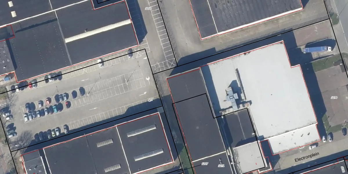 Het perceel waarop Electronplein 15 staat heeft een oppervlakte van 6515 m². Dit is een zeer groot perceel. De perceeloppervlakte wordt geregistreerd door het Kadaster. Gedetailleerde informatie over de maten van dit perceel kunt u vinden in het rapport Kadastrale kaart met maatvoering van Electronplein 15.