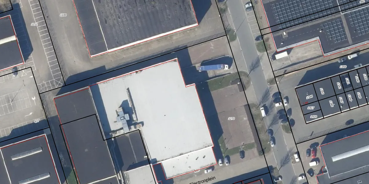 Het perceel waarop Electronplein 28 staat heeft een oppervlakte van 6515 m². Dit is een zeer groot perceel. De perceeloppervlakte wordt geregistreerd door het Kadaster. Gedetailleerde informatie over de maten van dit perceel kunt u vinden in het rapport Kadastrale kaart met maatvoering van Electronplein 28.