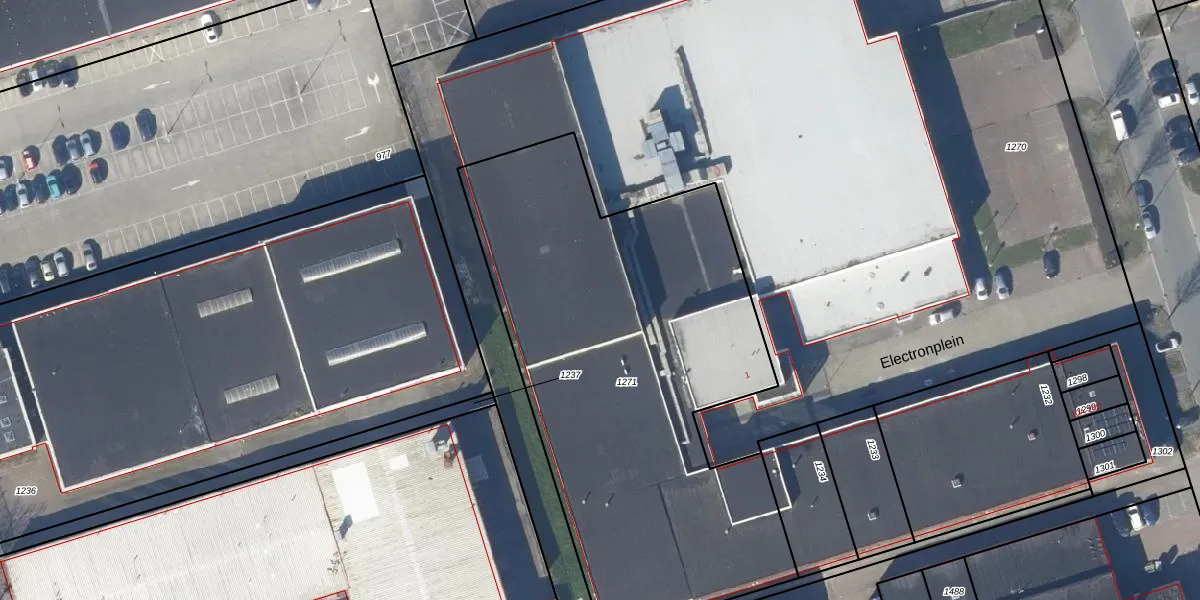 Het perceel waarop Electronplein 47 staat heeft een oppervlakte van 2720 m². Dit is een zeer groot perceel. De perceeloppervlakte wordt geregistreerd door het Kadaster. Gedetailleerde informatie over de maten van dit perceel kunt u vinden in het rapport Kadastrale kaart met maatvoering van Electronplein 47.