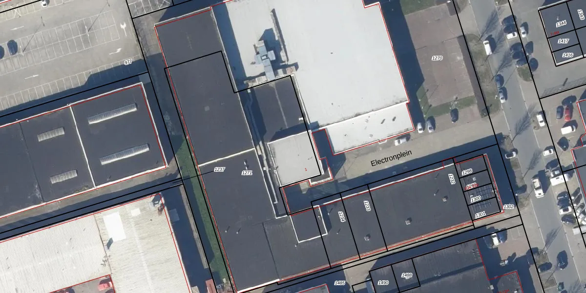 Het perceel waarop Electronplein 55 staat heeft een oppervlakte van 2720 m². Dit is een zeer groot perceel. De perceeloppervlakte wordt geregistreerd door het Kadaster. Gedetailleerde informatie over de maten van dit perceel kunt u vinden in het rapport Kadastrale kaart met maatvoering van Electronplein 55.