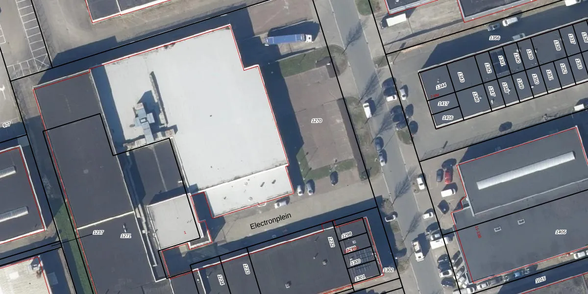 Het perceel waarop Electronplein 66 staat heeft een oppervlakte van 6515 m². Dit is een zeer groot perceel. De perceeloppervlakte wordt geregistreerd door het Kadaster. Gedetailleerde informatie over de maten van dit perceel kunt u vinden in het rapport Kadastrale kaart met maatvoering van Electronplein 66.