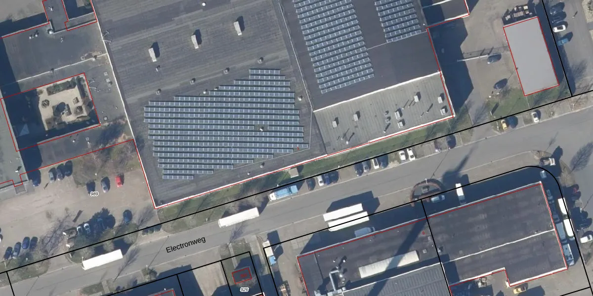 Het perceel waarop Electronweg 1 staat heeft een oppervlakte van 2,2 ha. Dit is een zeer groot perceel. De perceeloppervlakte wordt geregistreerd door het Kadaster. Gedetailleerde informatie over de maten van dit perceel kunt u vinden in het rapport Kadastrale kaart met maatvoering van Electronweg 1.
