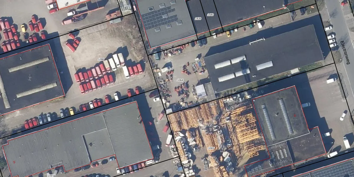 Het perceel waarop Electronweg 14-020 staat heeft een oppervlakte van 3488 m². Dit is een zeer groot perceel. De perceeloppervlakte wordt geregistreerd door het Kadaster. Gedetailleerde informatie over de maten van dit perceel kunt u vinden in het rapport Kadastrale kaart met maatvoering van Electronweg 14-020.