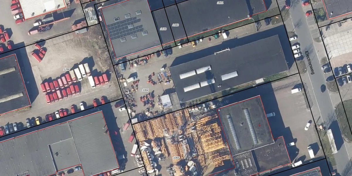 Het perceel waarop Electronweg 14-024 staat heeft een oppervlakte van 3488 m². Dit is een zeer groot perceel. De perceeloppervlakte wordt geregistreerd door het Kadaster. Gedetailleerde informatie over de maten van dit perceel kunt u vinden in het rapport Kadastrale kaart met maatvoering van Electronweg 14-024.