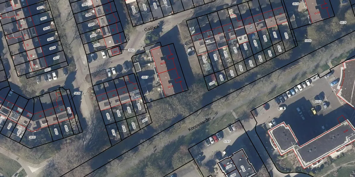 Het perceel waarop Galjoen 32 staat heeft een oppervlakte van 719 m². Dit is een groot perceel. De perceeloppervlakte wordt geregistreerd door het Kadaster. Gedetailleerde informatie over de maten van dit perceel kunt u vinden in het rapport Kadastrale kaart met maatvoering van Galjoen 32.