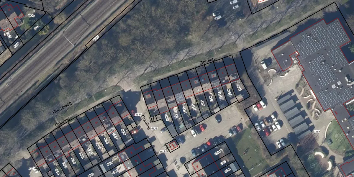 Het perceel waarop Gording 7 staat heeft een oppervlakte van 165 m². Dit is een middelgroot perceel. De perceeloppervlakte wordt geregistreerd door het Kadaster. Gedetailleerde informatie over de maten van dit perceel kunt u vinden in het rapport Kadastrale kaart met maatvoering van Gording 7.