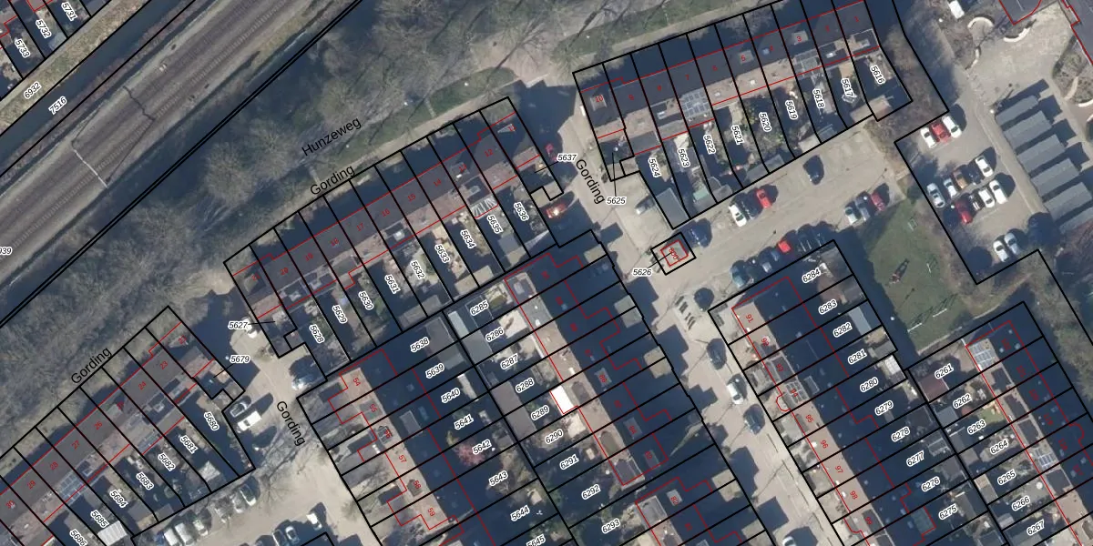 Het perceel waarop Gording 90 staat heeft een oppervlakte van 192 m². Dit is een middelgroot perceel. De perceeloppervlakte wordt geregistreerd door het Kadaster. Gedetailleerde informatie over de maten van dit perceel kunt u vinden in het rapport Kadastrale kaart met maatvoering van Gording 90.
