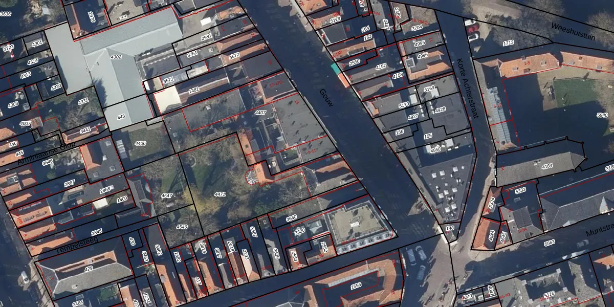 Het perceel waarop Gouw 9-D staat heeft een oppervlakte van 1096 m². Dit is een zeer groot perceel. De perceeloppervlakte wordt geregistreerd door het Kadaster. Gedetailleerde informatie over de maten van dit perceel kunt u vinden in het rapport Kadastrale kaart met maatvoering van Gouw 9-D.