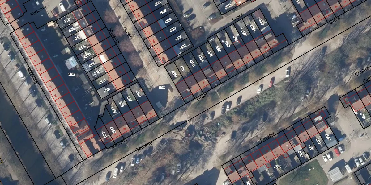 Gebruik de zoekbalk of klik op een perceel voor informatie over de adressen binnen dit perceel.