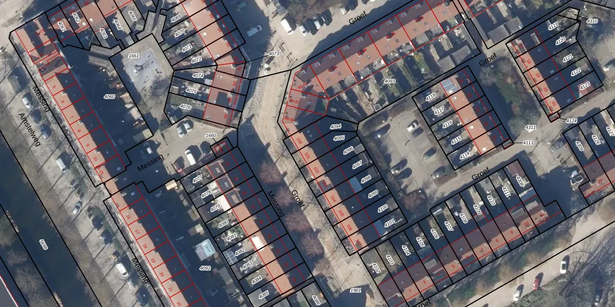 Het perceel waarop Groef 101 staat heeft een oppervlakte van 106 m². Dit is een middelgroot perceel. De perceeloppervlakte wordt geregistreerd door het Kadaster. Gedetailleerde informatie over de maten van dit perceel kunt u vinden in het rapport Kadastrale kaart met maatvoering van Groef 101.