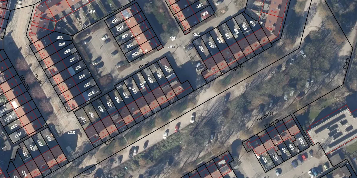 Het perceel waarop Groef 11 staat heeft een oppervlakte van 170 m². Dit is een middelgroot perceel. De perceeloppervlakte wordt geregistreerd door het Kadaster. Gedetailleerde informatie over de maten van dit perceel kunt u vinden in het rapport Kadastrale kaart met maatvoering van Groef 11.