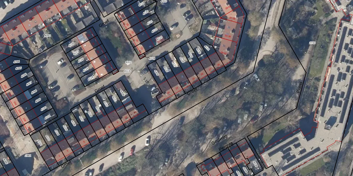 Het perceel waarop Groef 23 staat heeft een oppervlakte van 133 m². Dit is een middelgroot perceel. De perceeloppervlakte wordt geregistreerd door het Kadaster. Gedetailleerde informatie over de maten van dit perceel kunt u vinden in het rapport Kadastrale kaart met maatvoering van Groef 23.