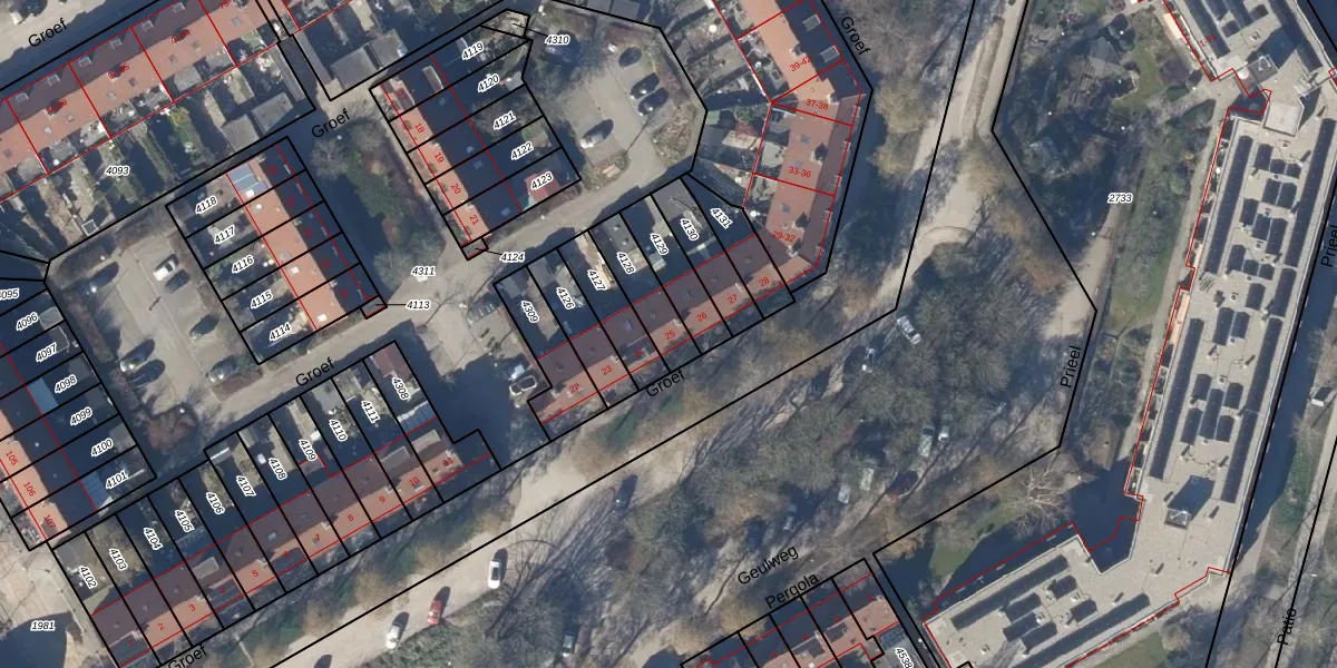 Het perceel waarop Groef 25 staat heeft een oppervlakte van 133 m². Dit is een middelgroot perceel. De perceeloppervlakte wordt geregistreerd door het Kadaster. Gedetailleerde informatie over de maten van dit perceel kunt u vinden in het rapport Kadastrale kaart met maatvoering van Groef 25.