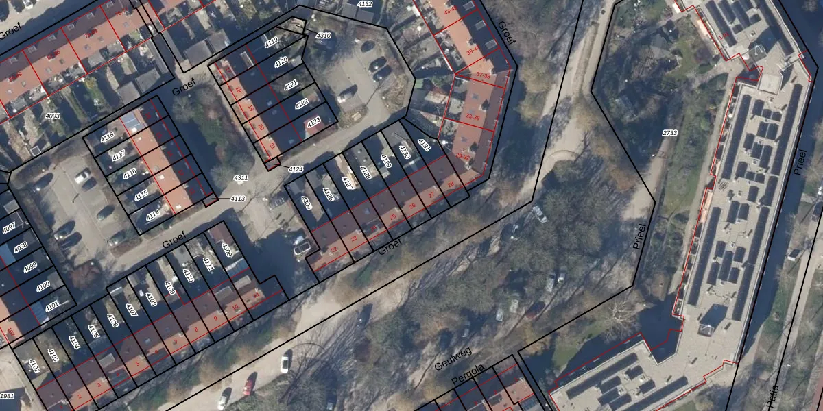 Het perceel waarop Groef 26 staat heeft een oppervlakte van 133 m². Dit is een middelgroot perceel. De perceeloppervlakte wordt geregistreerd door het Kadaster. Gedetailleerde informatie over de maten van dit perceel kunt u vinden in het rapport Kadastrale kaart met maatvoering van Groef 26.