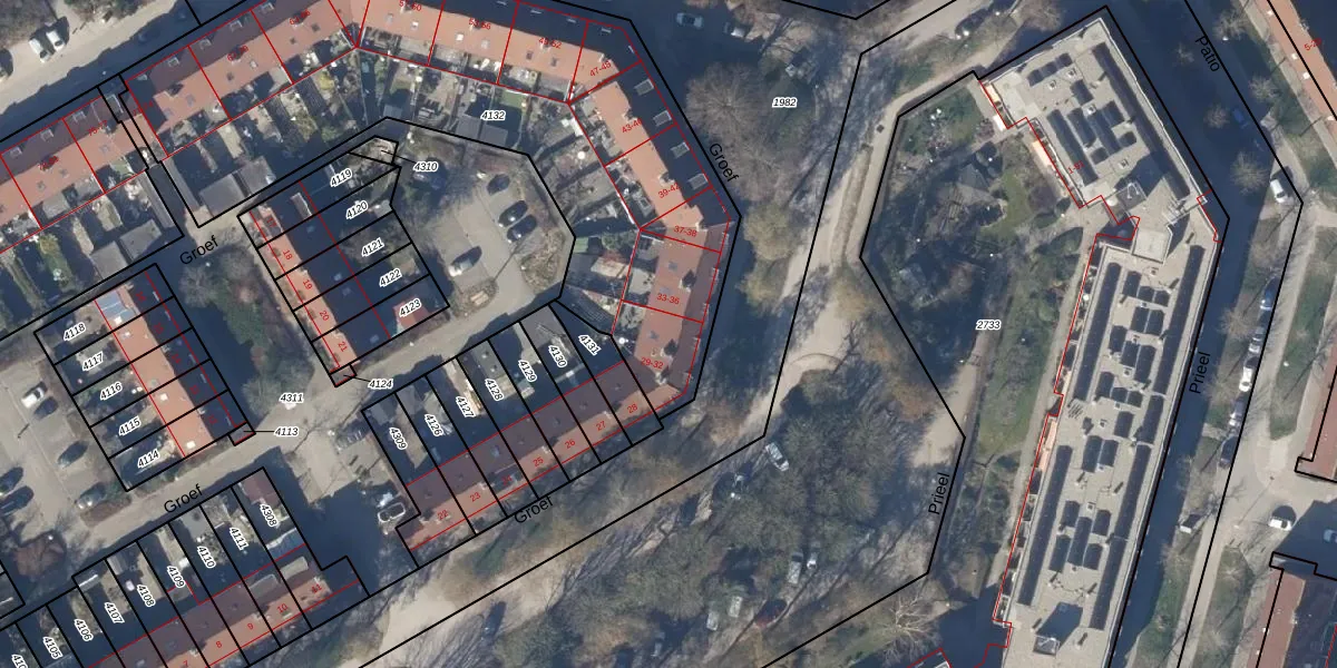 Het perceel waarop Groef 32 staat heeft een oppervlakte van 2757 m². Dit is een zeer groot perceel. De perceeloppervlakte wordt geregistreerd door het Kadaster. Gedetailleerde informatie over de maten van dit perceel kunt u vinden in het rapport Kadastrale kaart met maatvoering van Groef 32.