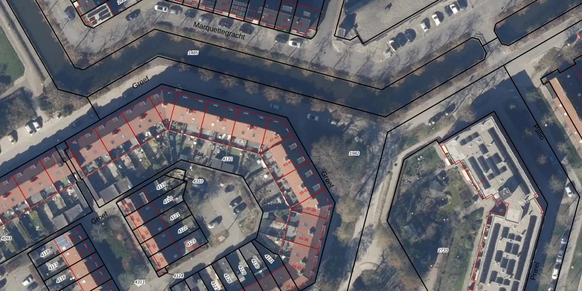Het perceel waarop Groef 44 staat heeft een oppervlakte van 2757 m². Dit is een zeer groot perceel. De perceeloppervlakte wordt geregistreerd door het Kadaster. Gedetailleerde informatie over de maten van dit perceel kunt u vinden in het rapport Kadastrale kaart met maatvoering van Groef 44.