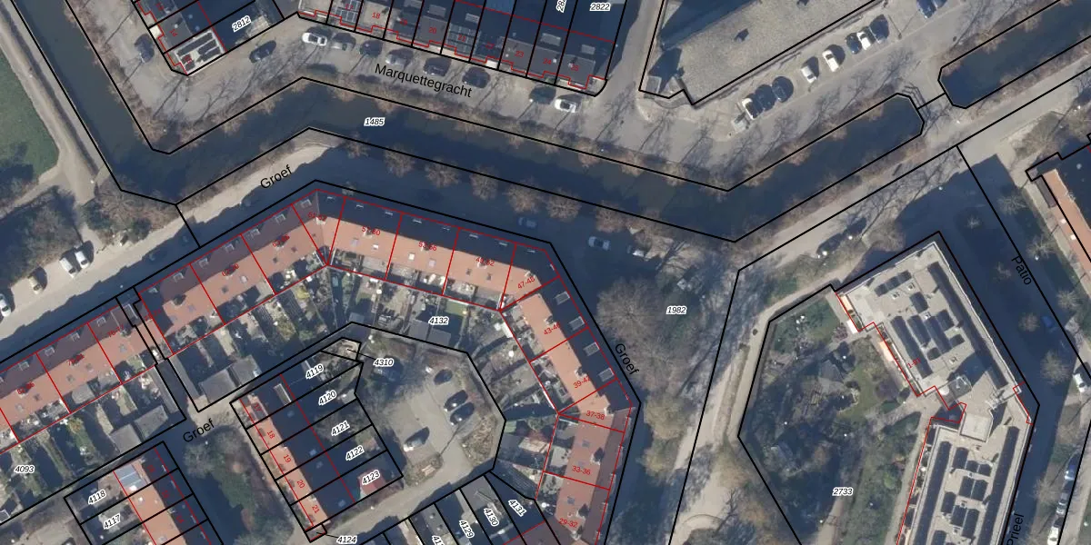 Het perceel waarop Groef 47 staat heeft een oppervlakte van 2757 m². Dit is een zeer groot perceel. De perceeloppervlakte wordt geregistreerd door het Kadaster. Gedetailleerde informatie over de maten van dit perceel kunt u vinden in het rapport Kadastrale kaart met maatvoering van Groef 47.