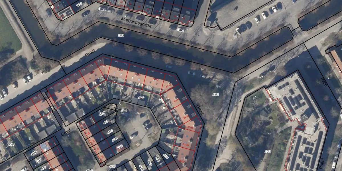 Het perceel waarop Groef 48 staat heeft een oppervlakte van 2757 m². Dit is een zeer groot perceel. De perceeloppervlakte wordt geregistreerd door het Kadaster. Gedetailleerde informatie over de maten van dit perceel kunt u vinden in het rapport Kadastrale kaart met maatvoering van Groef 48.