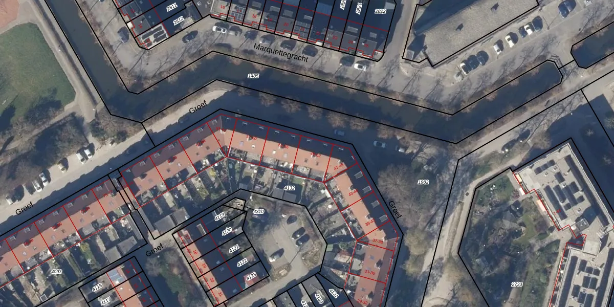 Het perceel waarop Groef 52 staat heeft een oppervlakte van 2757 m². Dit is een zeer groot perceel. De perceeloppervlakte wordt geregistreerd door het Kadaster. Gedetailleerde informatie over de maten van dit perceel kunt u vinden in het rapport Kadastrale kaart met maatvoering van Groef 52.