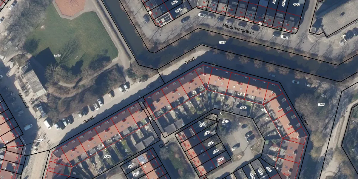 Het perceel waarop Groef 69 staat heeft een oppervlakte van 2757 m². Dit is een zeer groot perceel. De perceeloppervlakte wordt geregistreerd door het Kadaster. Gedetailleerde informatie over de maten van dit perceel kunt u vinden in het rapport Kadastrale kaart met maatvoering van Groef 69.