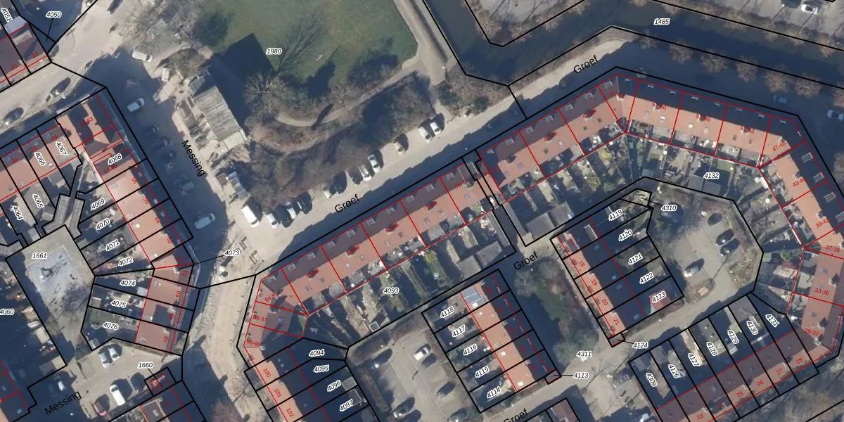 Het perceel waarop Groef 81 staat heeft een oppervlakte van 1562 m². Dit is een zeer groot perceel. De perceeloppervlakte wordt geregistreerd door het Kadaster. Gedetailleerde informatie over de maten van dit perceel kunt u vinden in het rapport Kadastrale kaart met maatvoering van Groef 81.