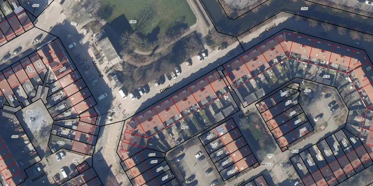 Het perceel waarop Groef 82 staat heeft een oppervlakte van 1562 m². Dit is een zeer groot perceel. De perceeloppervlakte wordt geregistreerd door het Kadaster. Gedetailleerde informatie over de maten van dit perceel kunt u vinden in het rapport Kadastrale kaart met maatvoering van Groef 82.
