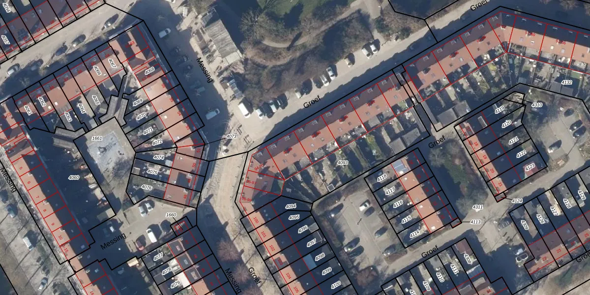 Het perceel waarop Groef 92 staat heeft een oppervlakte van 1562 m². Dit is een zeer groot perceel. De perceeloppervlakte wordt geregistreerd door het Kadaster. Gedetailleerde informatie over de maten van dit perceel kunt u vinden in het rapport Kadastrale kaart met maatvoering van Groef 92.