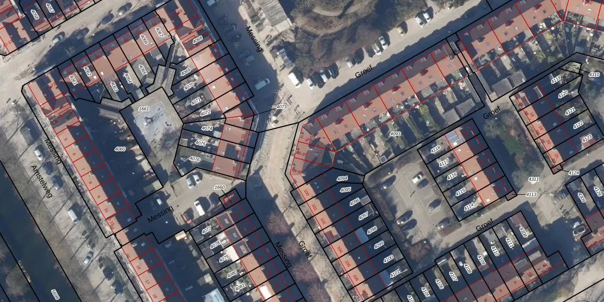 Het perceel waarop Groef 96 staat heeft een oppervlakte van 1562 m². Dit is een zeer groot perceel. De perceeloppervlakte wordt geregistreerd door het Kadaster. Gedetailleerde informatie over de maten van dit perceel kunt u vinden in het rapport Kadastrale kaart met maatvoering van Groef 96.