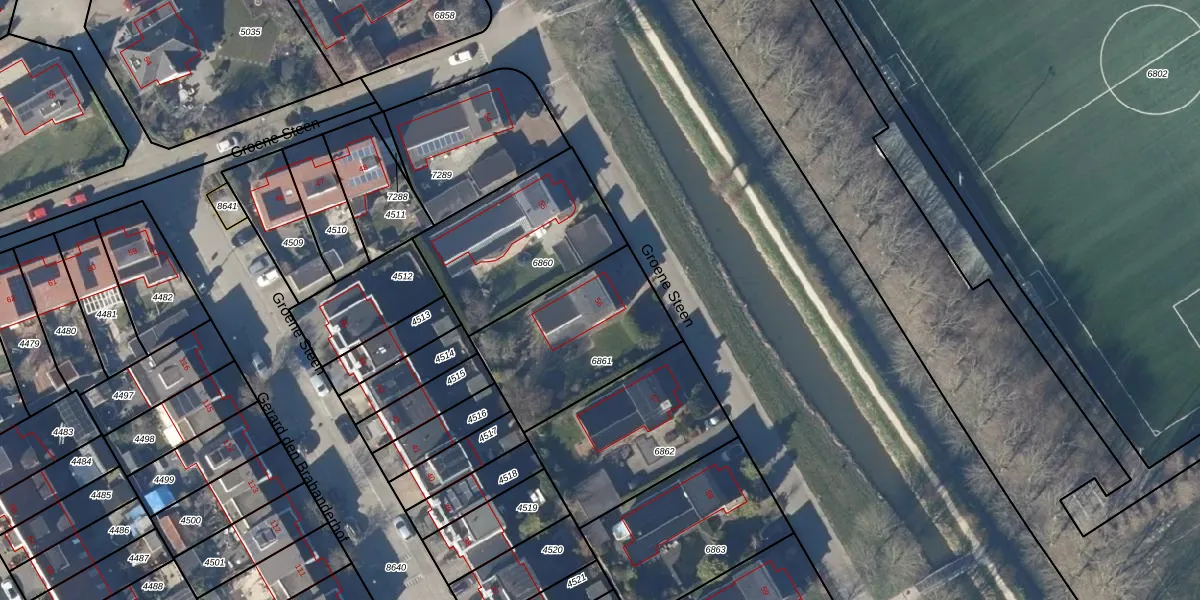 Het perceel waarop Groene Steen 56 staat heeft een oppervlakte van 569 m². Dit is een groot perceel. De perceeloppervlakte wordt geregistreerd door het Kadaster. Gedetailleerde informatie over de maten van dit perceel kunt u vinden in het rapport Kadastrale kaart met maatvoering van Groene Steen 56.