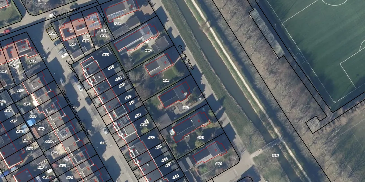 Het perceel waarop Groene Steen 57 staat heeft een oppervlakte van 569 m². Dit is een groot perceel. De perceeloppervlakte wordt geregistreerd door het Kadaster. Gedetailleerde informatie over de maten van dit perceel kunt u vinden in het rapport Kadastrale kaart met maatvoering van Groene Steen 57.
