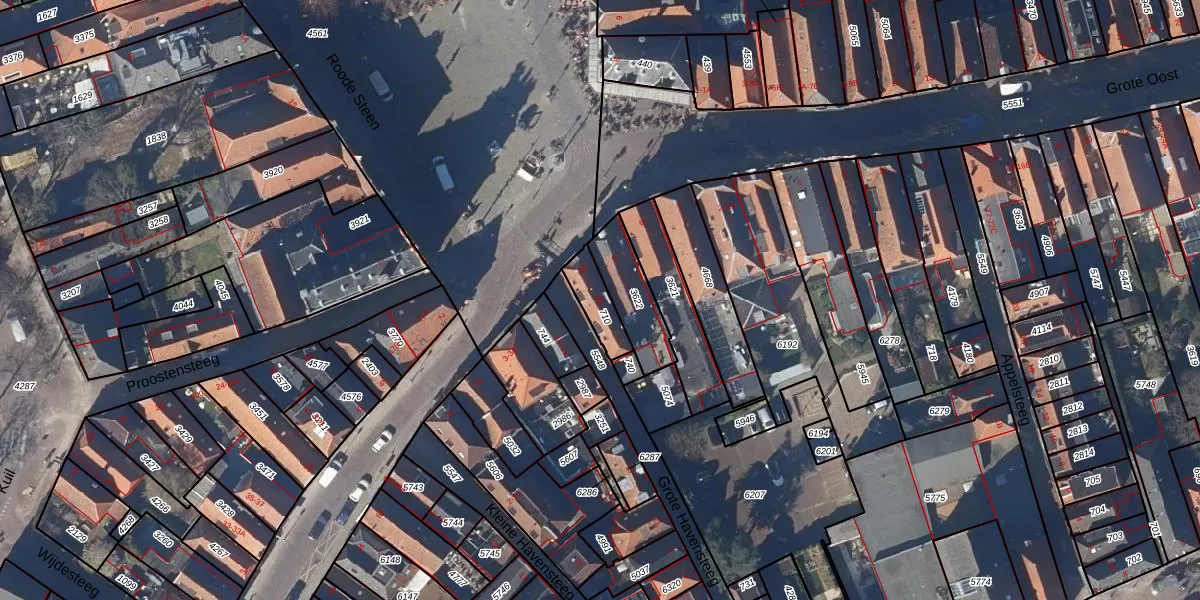 Het perceel waarop Grote Havensteeg 20 staat heeft een oppervlakte van 90 m². Dit is een klein perceel. De perceeloppervlakte wordt geregistreerd door het Kadaster. Gedetailleerde informatie over de maten van dit perceel kunt u vinden in het rapport Kadastrale kaart met maatvoering van Grote Havensteeg 20.