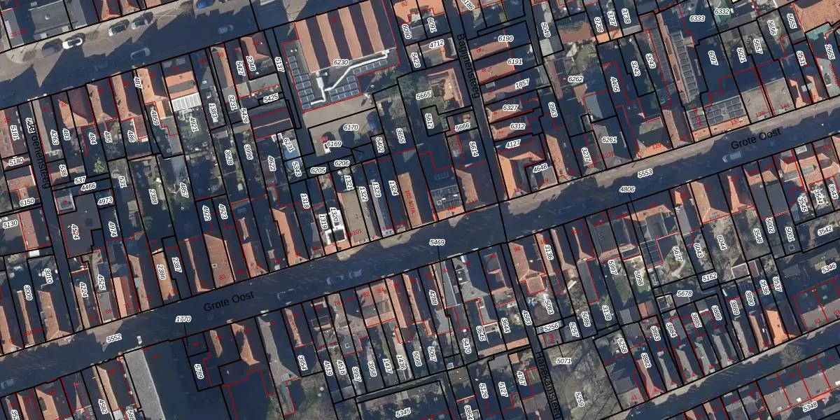 Het perceel waarop Grote Oost 107-A staat heeft een oppervlakte van 220 m². Dit is een middelgroot perceel. De perceeloppervlakte wordt geregistreerd door het Kadaster. Gedetailleerde informatie over de maten van dit perceel kunt u vinden in het rapport Kadastrale kaart met maatvoering van Grote Oost 107-A.