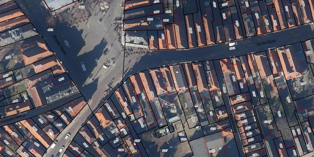 Het perceel waarop Grote Oost 2-E staat heeft een oppervlakte van 570 m². Dit is een groot perceel. De perceeloppervlakte wordt geregistreerd door het Kadaster. Gedetailleerde informatie over de maten van dit perceel kunt u vinden in het rapport Kadastrale kaart met maatvoering van Grote Oost 2-E.