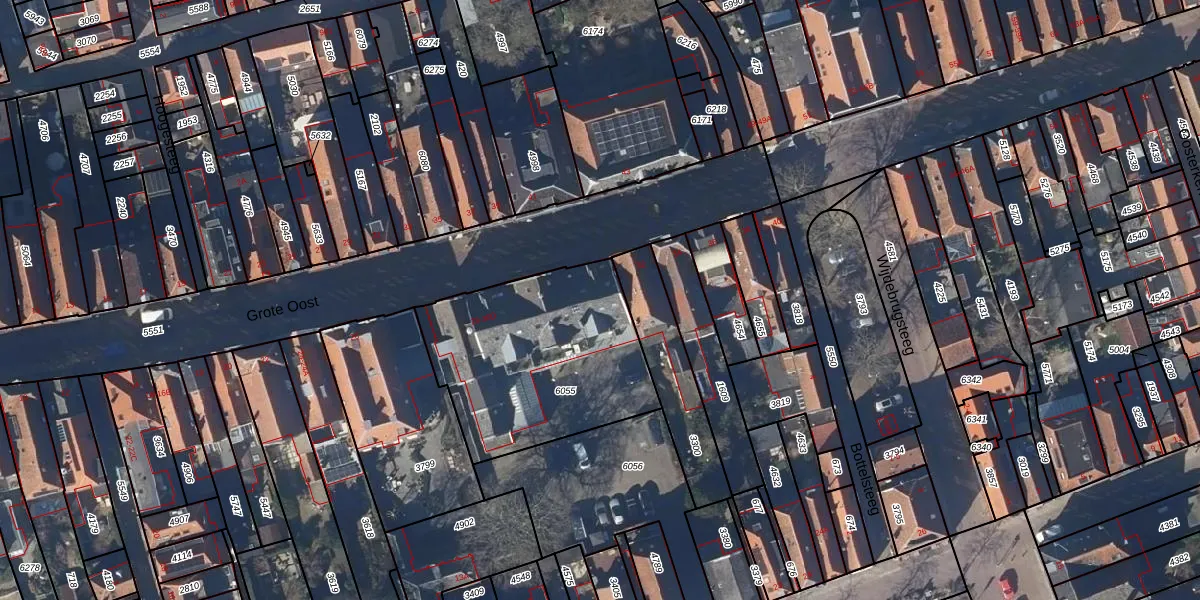 Het perceel waarop Grote Oost 30-D staat heeft een oppervlakte van 900 m². Dit is een groot perceel. De perceeloppervlakte wordt geregistreerd door het Kadaster. Gedetailleerde informatie over de maten van dit perceel kunt u vinden in het rapport Kadastrale kaart met maatvoering van Grote Oost 30-D.