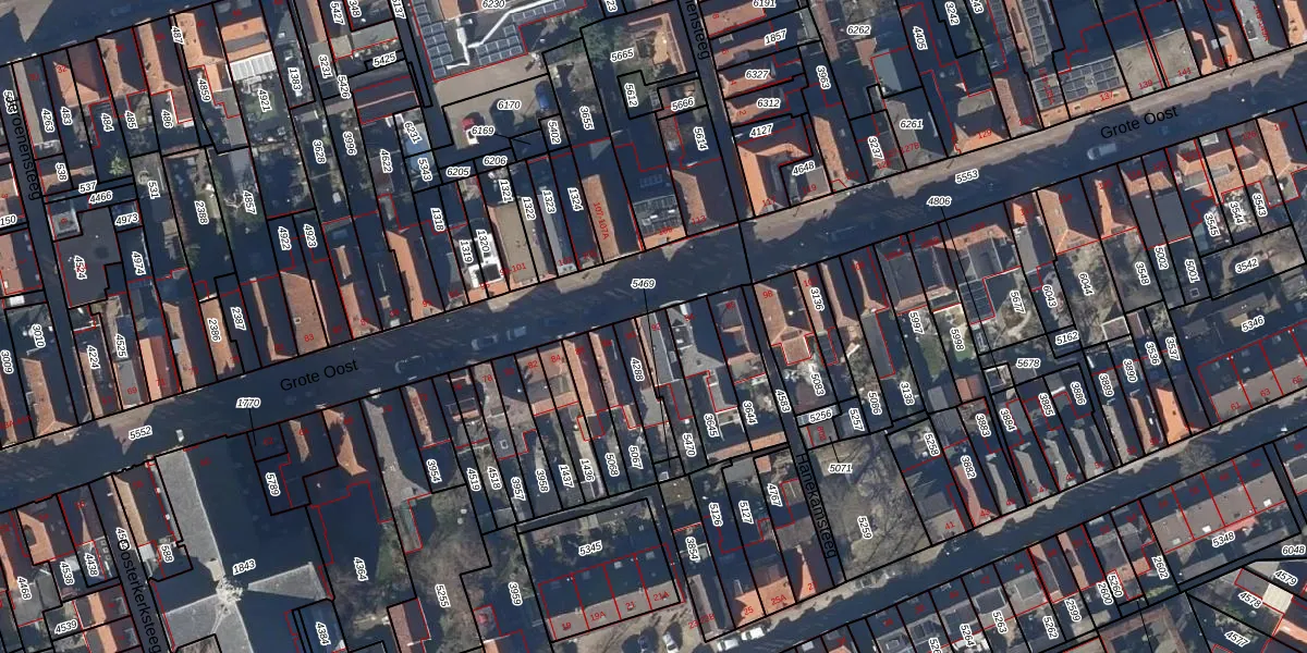 Het perceel waarop Grote Oost 92 staat heeft een oppervlakte van 106 m². Dit is een middelgroot perceel. De perceeloppervlakte wordt geregistreerd door het Kadaster. Gedetailleerde informatie over de maten van dit perceel kunt u vinden in het rapport Kadastrale kaart met maatvoering van Grote Oost 92.