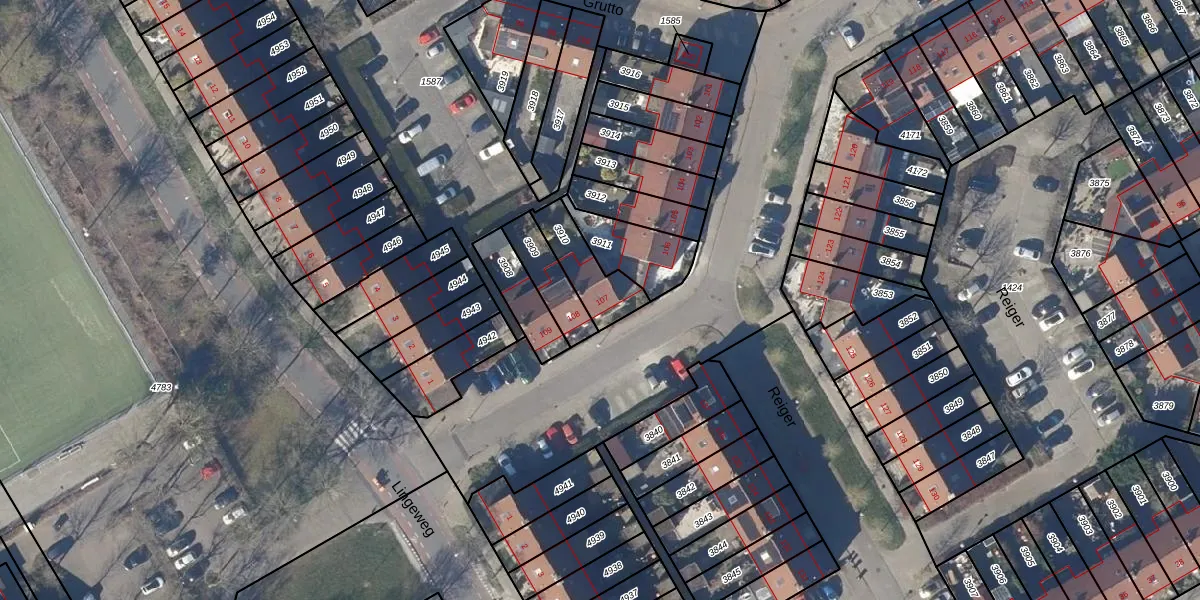 Het perceel waarop Grutto 107 staat heeft een oppervlakte van 152 m². Dit is een middelgroot perceel. De perceeloppervlakte wordt geregistreerd door het Kadaster. Gedetailleerde informatie over de maten van dit perceel kunt u vinden in het rapport Kadastrale kaart met maatvoering van Grutto 107.