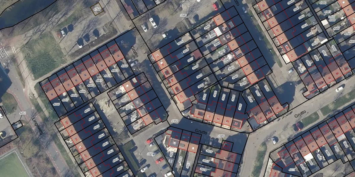 Het perceel waarop Grutto 88 staat heeft een oppervlakte van 146 m². Dit is een middelgroot perceel. De perceeloppervlakte wordt geregistreerd door het Kadaster. Gedetailleerde informatie over de maten van dit perceel kunt u vinden in het rapport Kadastrale kaart met maatvoering van Grutto 88.