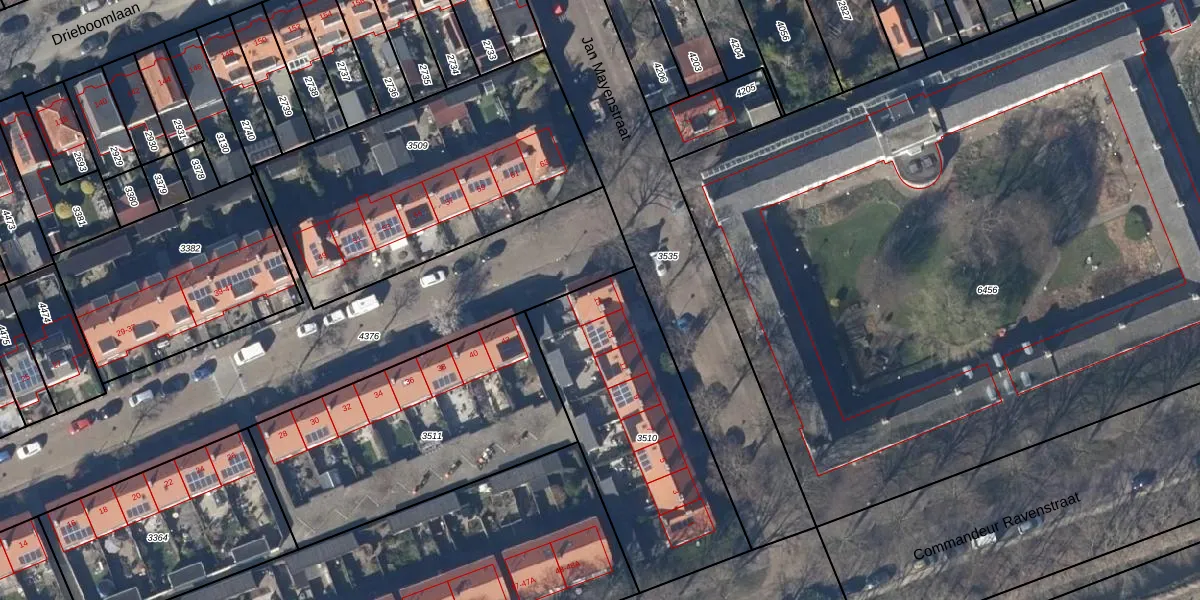 Het perceel waarop Jan Mayenstraat 15 staat heeft een oppervlakte van 1020 m². Dit is een zeer groot perceel. De perceeloppervlakte wordt geregistreerd door het Kadaster. Gedetailleerde informatie over de maten van dit perceel kunt u vinden in het rapport Kadastrale kaart met maatvoering van Jan Mayenstraat 15.