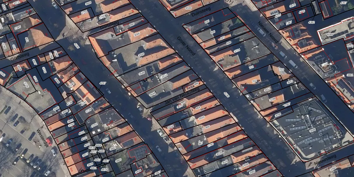 Jan van Necksteeg 2 is gelegen op kadastraal perceel HOO00B3644. Deze kadastrale aanduiding is uniek en wordt gebruikt door het Kadaster om eigendomsrechten en andere zakelijke rechten vast te leggen. Het perceel maakt onderdeel uit van de kadastrale gemeente Hoorn.