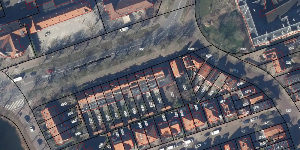 Gebruik de zoekbalk of klik op een perceel voor informatie over de adressen binnen dit perceel.